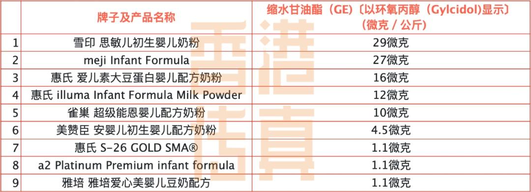 以下9款含致癌性环氧丙醇奶粉,请查看